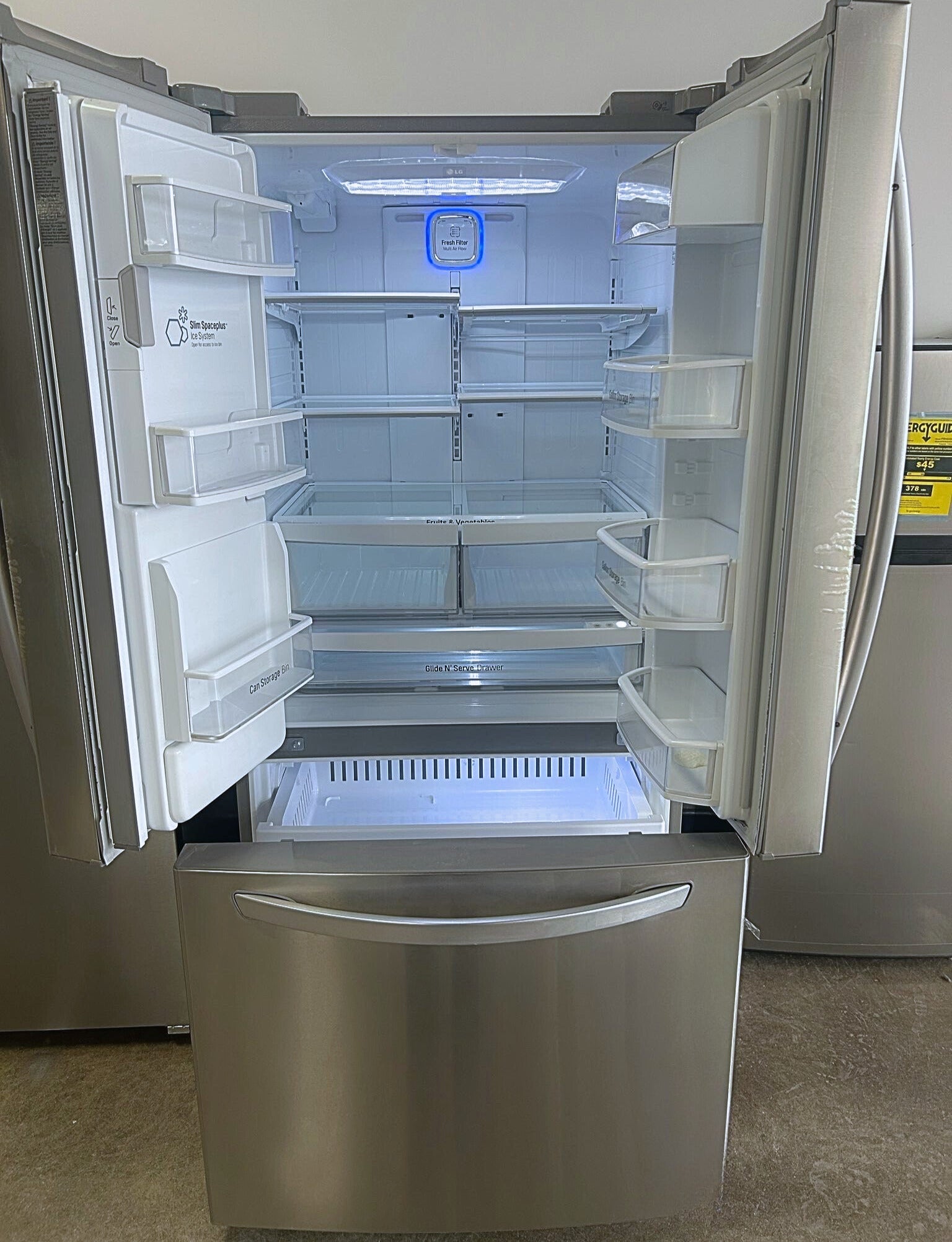 The LG 25 cu. ft. French Door Refrigerator (LFXS24623S) offers spacious storage, Smart Cooling® technology, and a modern stainless steel design. Perfect for larger households, this refrigerator ensures optimal freshness and efficiency.