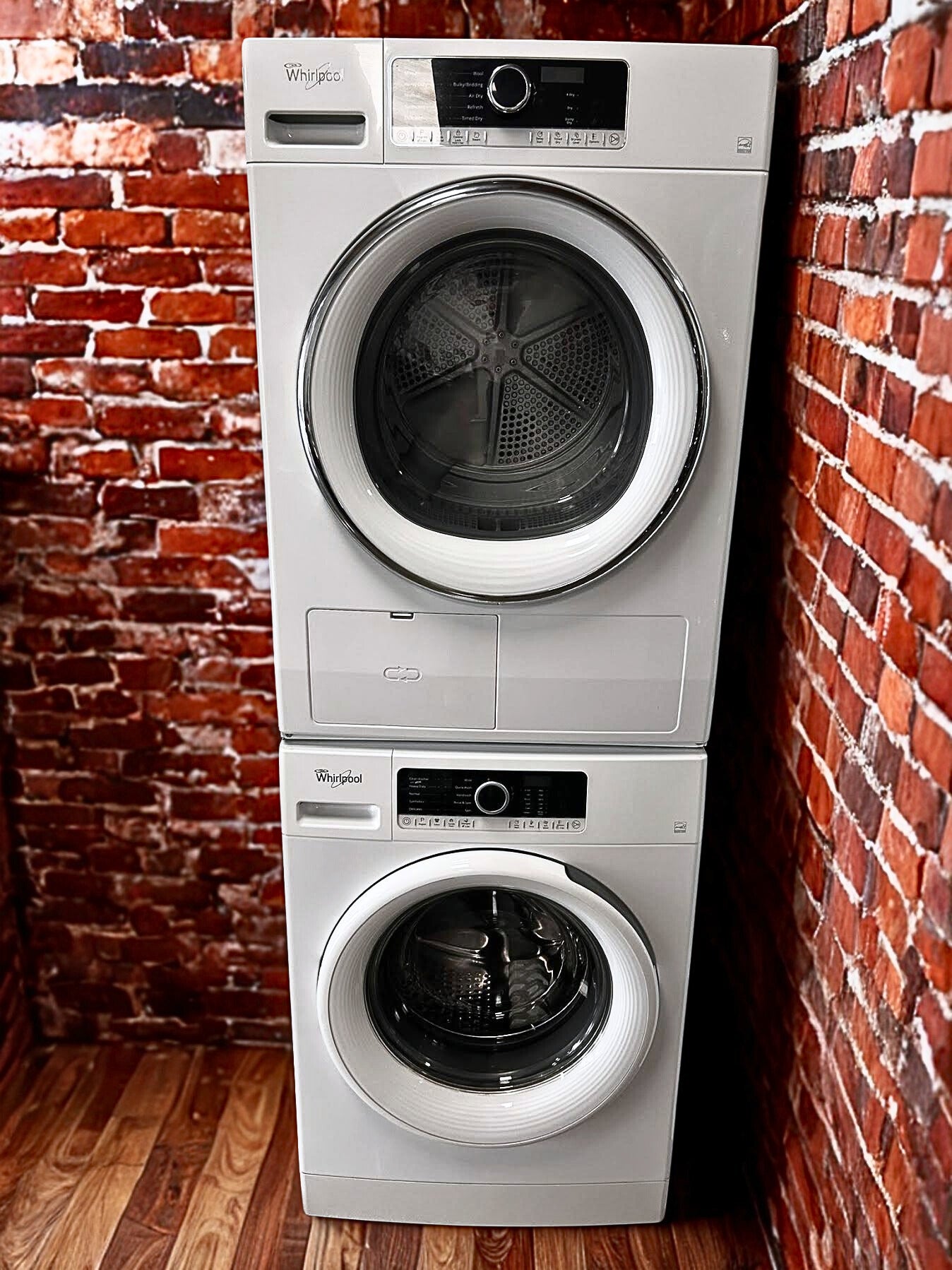 This Whirlpool compact washer and dryer set is made by the best selling brand in North America. Its stylish looks and versatile use in that it is fully stackable with the ventless system of drying provides an excellent option for those households with no outside vents. This set is also one of the newer of the models in the 24'' inch size. If you are looking for durability and performance we recommend this set for your family in your home, or tenants in your rental property.